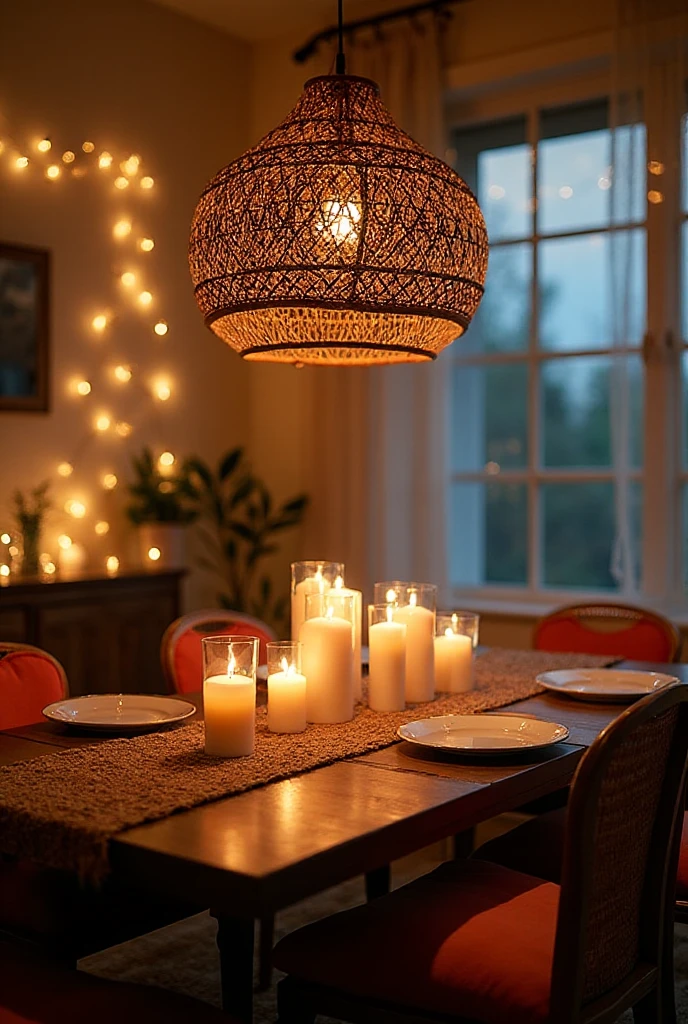You might also consider candles—lots of ’em! Use different heights and shapes for visual interest. Place them on the dining table or hang them from the ceiling. The flickering light creates an intimate atmosphere that’s perfect for gatherings.