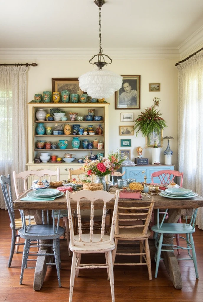 Imagine a mismatched set of dining chairs painted in various colors. Each one tells its own story while contributing to a cohesive look. Or consider a rustic farmhouse table surrounded by colorful cushions. Comfort is key!