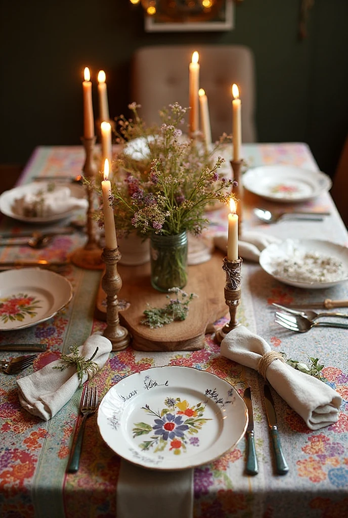 Table settings are where you can really let your creativity shine. Ditch the formal dinnerware for something more relaxed and colorful. Use mismatched plates and eclectic cutlery.