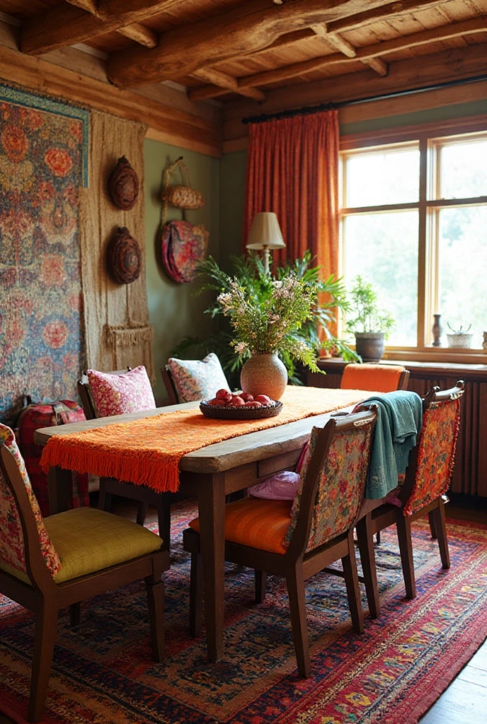 Textiles play a huge role in defining a boho chic dining room. Think about your table runner, chair cushions, and even wall hangings. Use bright patterns and textures to make your space feel warm and welcoming.