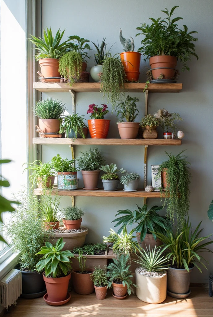 Creating a shelf garden is an easy and fun way to showcase a variety of plants. Grab some wooden or metal shelves and fill them with an eclectic mix of greenery. Use different pot sizes, shapes, and colors to create an eye-catching display.
