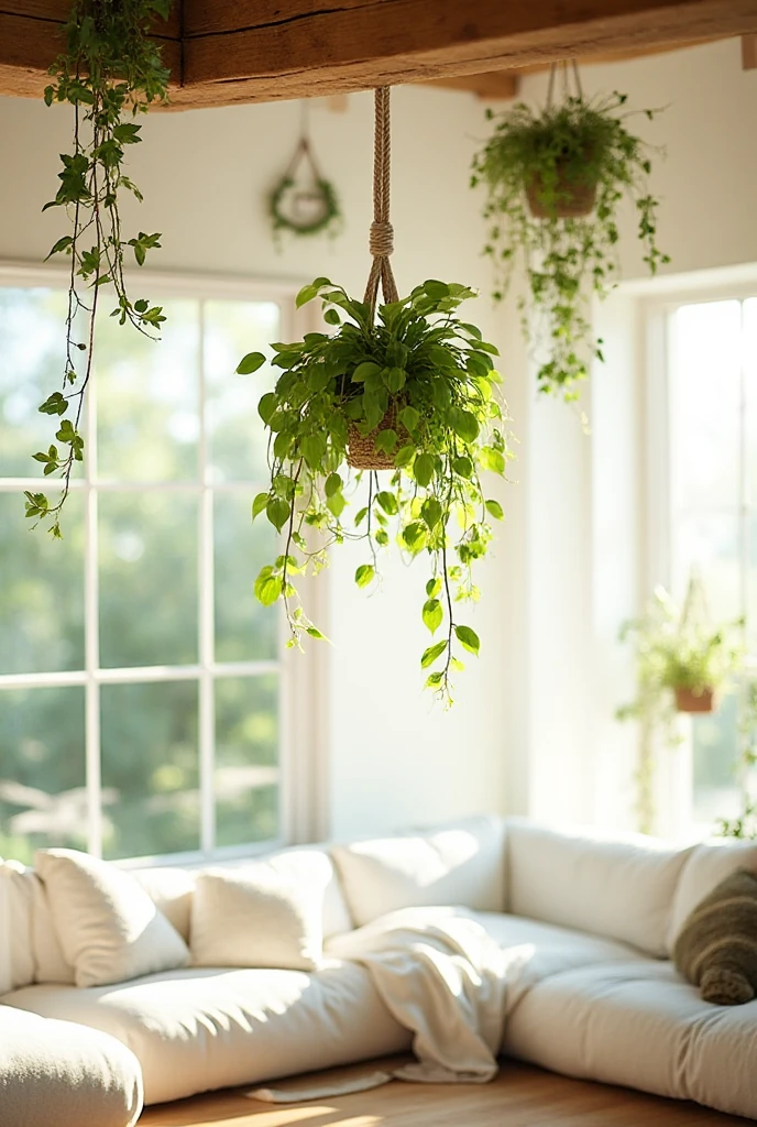You can use macramé hangers for a boho touch or simple hooks for a minimalist look. Just make sure they get enough light! Position them near a window where they can soak up the sun. Hanging plants take up no floor space, making them perfect for smaller rooms.