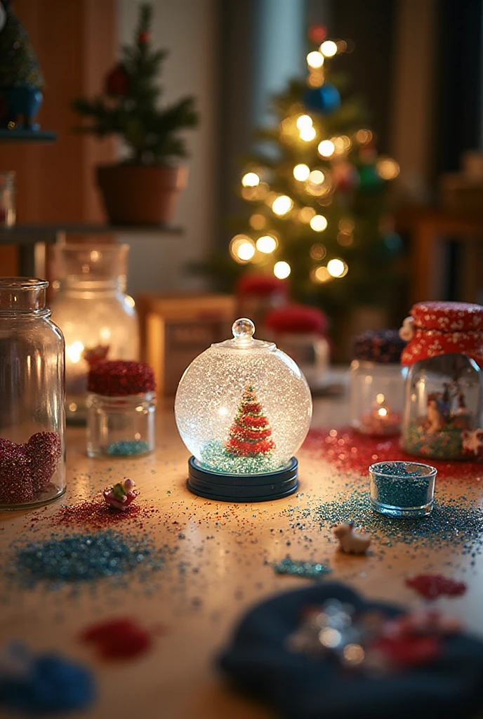 Making your own snow globes is a fun project! Use jars, mini figurines, and some fake snow.