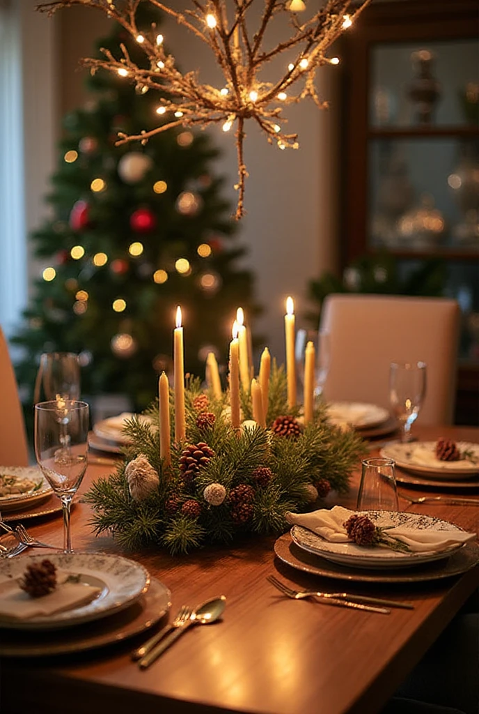A simple centerpiece can be a game changer. Use a tray and fill it with candles, pinecones, and ornaments.