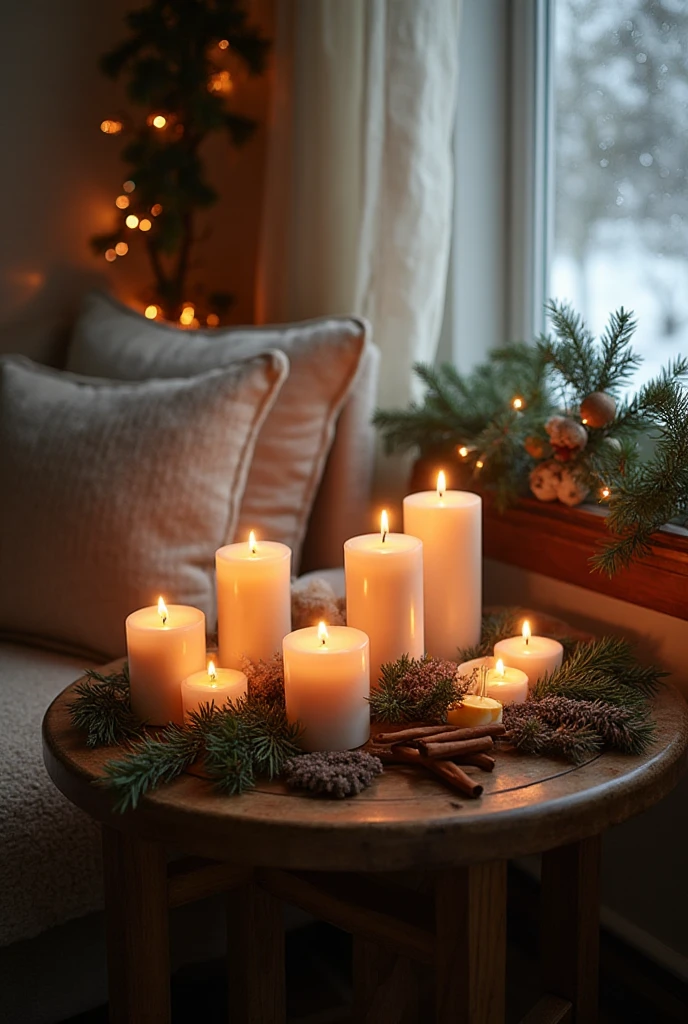 Choose festive scents like cinnamon, pine, or peppermint. Arrange them on a tray with some greenery for an elegant touch.