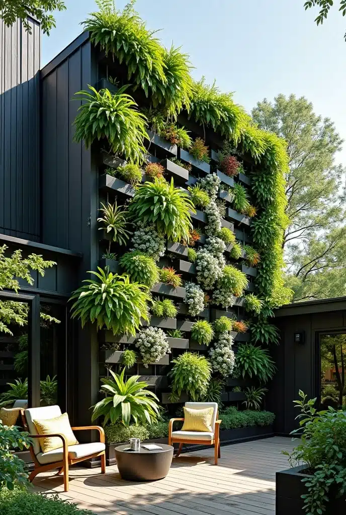 Vertical gardens are a fantastic way to bring greenery to your exterior. They’re perfect for smaller spaces where you want to maximize greenery without taking up too much ground space.