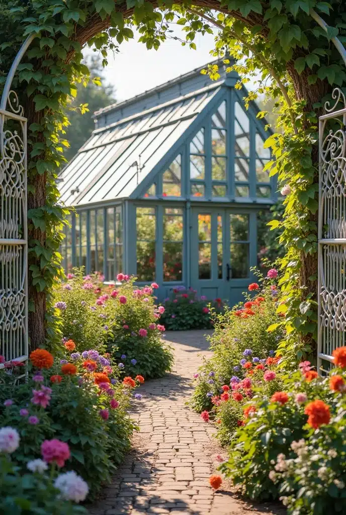 Fencing can frame your green house beautifully. Instead of traditional wood, consider decorative metal or picket fences. They can add an elegant touch while still providing security.