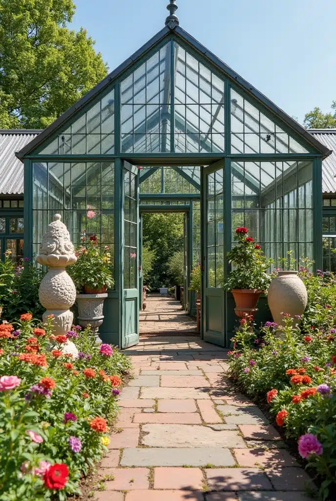 You can choose irregular shapes for a more rustic look. Or go for smooth, cut stones for a polished appearance. Either way, a well-designed pathway enhances the elegance of your green house.