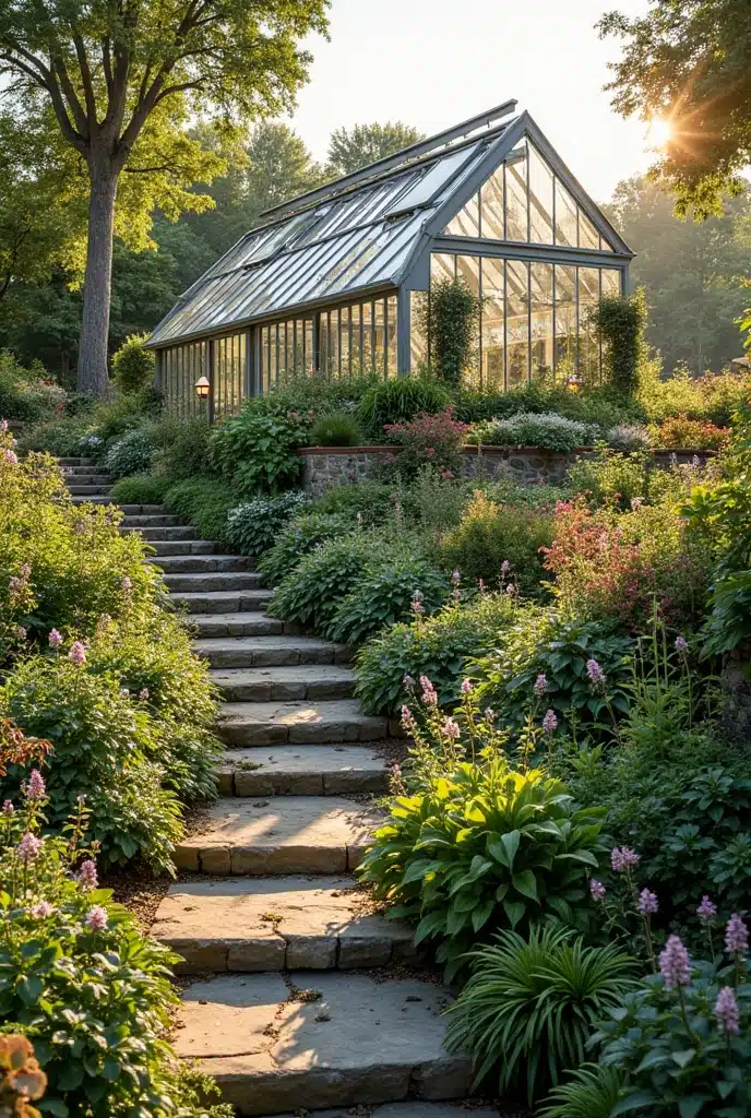 Each terrace can host different types of plants, creating a lush, layered effect. This not only maximizes space but also enhances the overall design of your green house.
