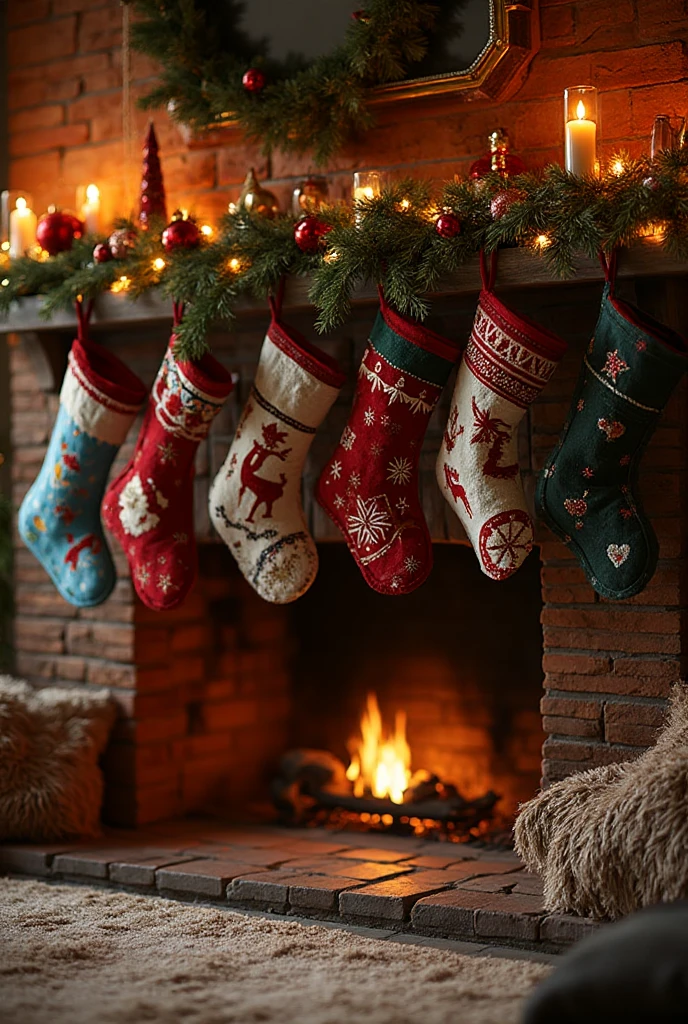 Nothing says Christmas like hanging stockings above the fireplace. Choose stockings that match your decor style. You can go classic with reds and greens or choose modern fabrics like faux fur or knitted patterns.