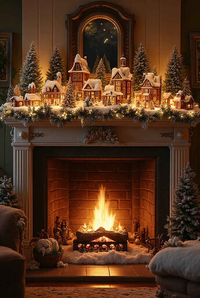 Set up a miniature Christmas village on your mantel. Use small houses, trees, and figurines to create a charming scene.