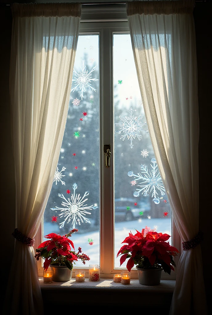 Make your windows festive with decorations. Hang ornaments or snowflakes from strings for a whimsical look.