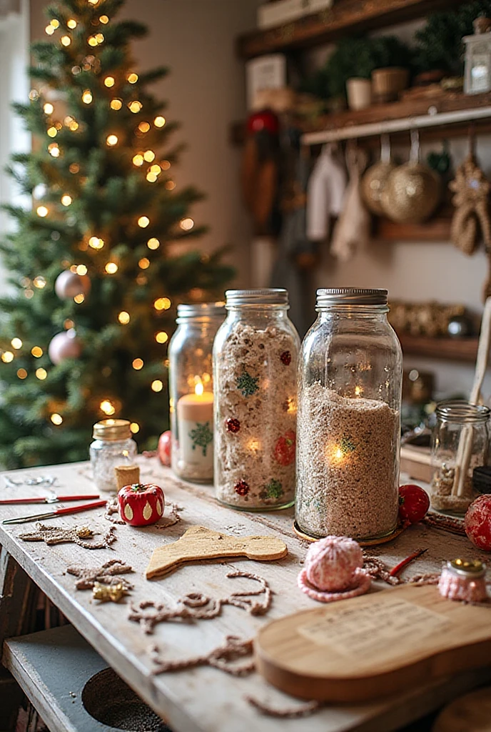 Turn glass jars into festive candle holders or use old ornaments to create a unique centerpiece. It’s eco-friendly and budget-friendly!