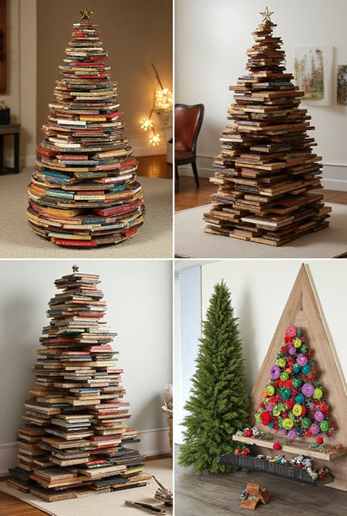 Try using a wooden pallet to create a rustic tree shape. You can decorate it with lights and ornaments for a fun twist.