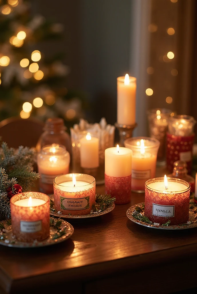 Choose festive scents like cinnamon, pine, or peppermint. Arrange them in clusters for a cozy look!