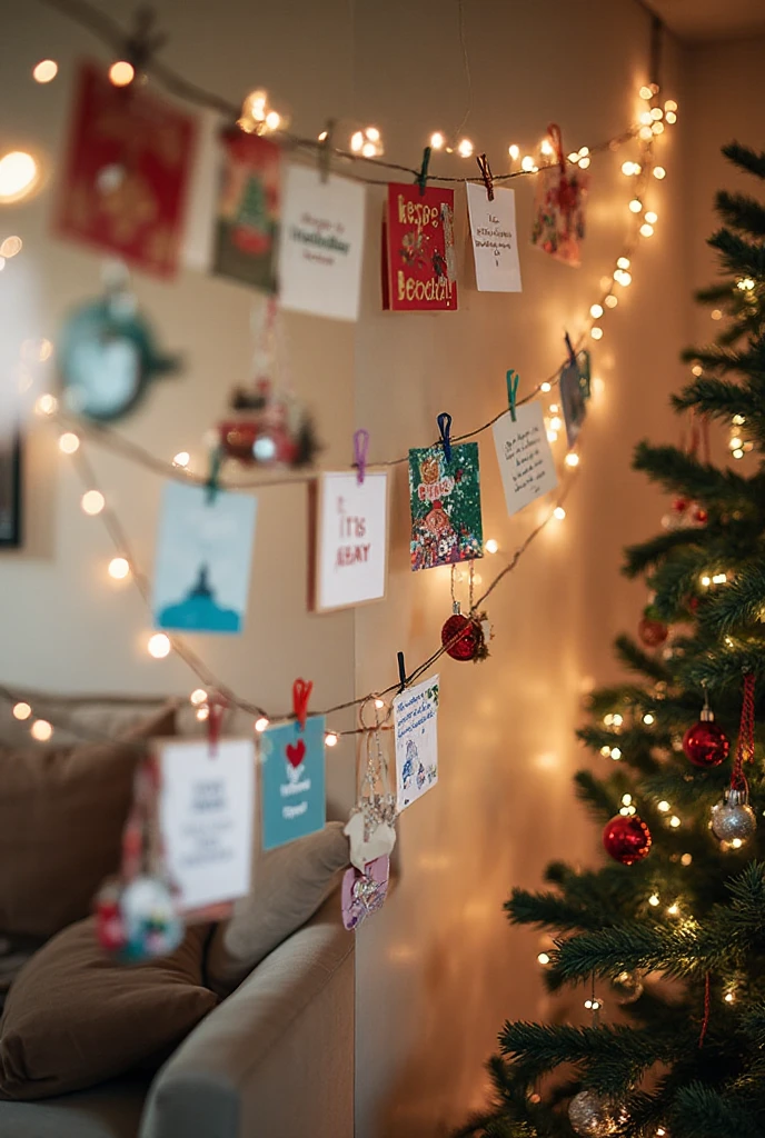 Show off your holiday cards with a DIY display. Use twine and clothespins to hang them in a creative way.