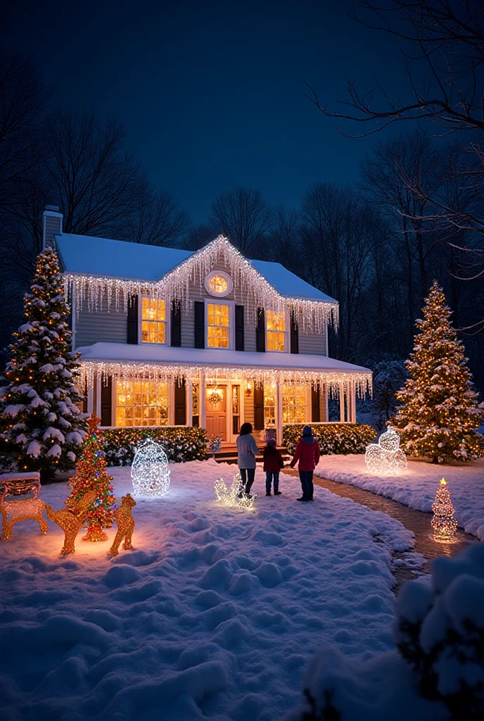 Transform your outdoors with a dazzling light display. String lights, icicle lights, and even projectors can create a magical atmosphere.