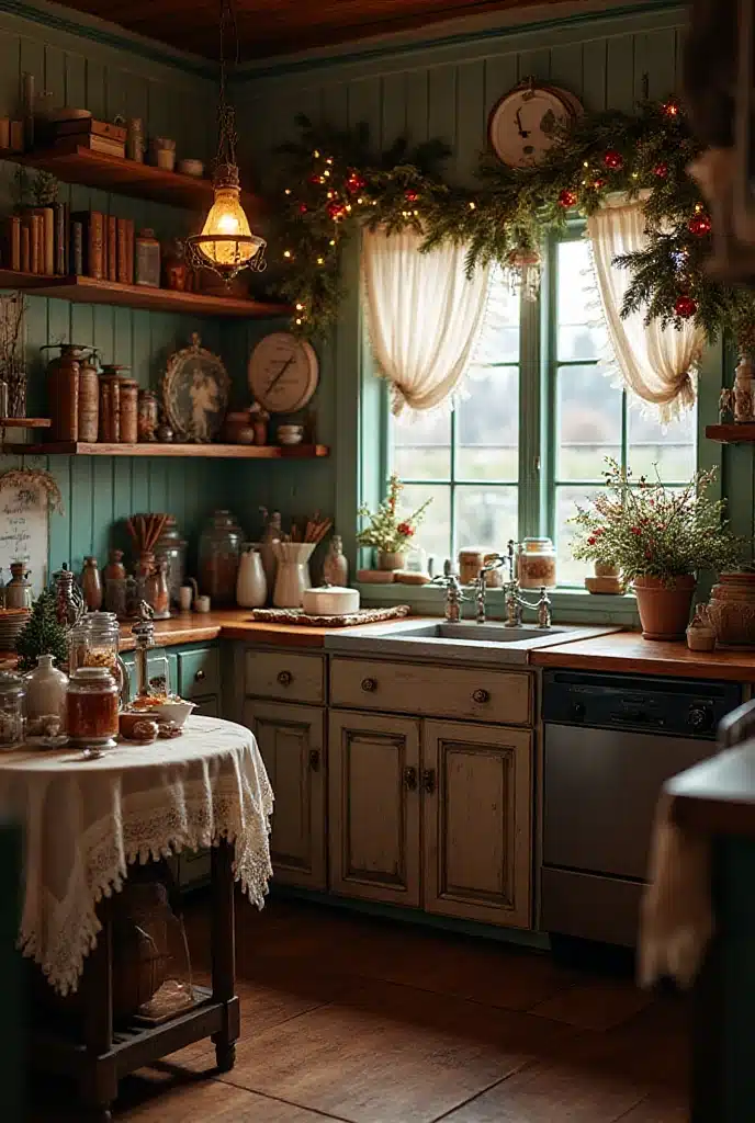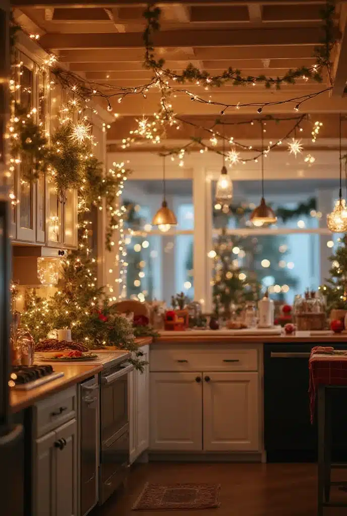 Adding string lights to your kitchen can create a magical atmosphere during the holidays. Drape them over cabinets, along shelves, or even around windows for a warm glow.