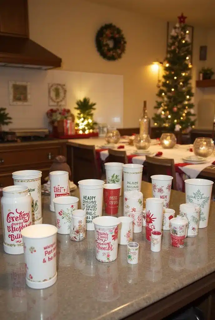 You could also consider making or purchasing reusable cups that match your kitchen theme. This adds a layer of sustainability to your holiday decor while still being stylish and functional.