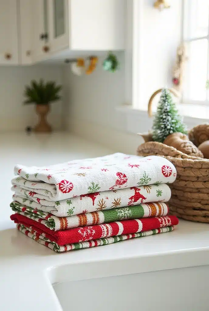 Consider layering dish towels of different textures and patterns. Pair a vibrant towel with a more subtle solid color that complements your overall decor. It’s a fun way to add a splash of color and holiday cheer without going overboard.