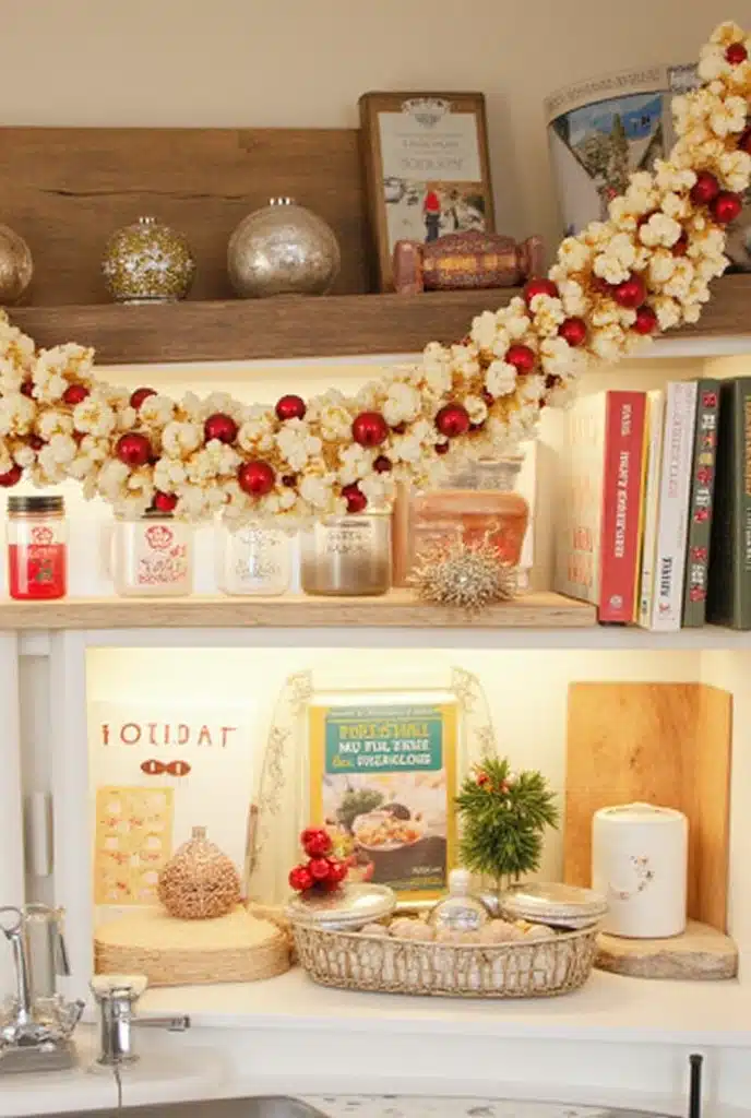 Creating a DIY garland is a fun project that can involve the whole family. Use materials like popcorn, cranberries, or even paper chains to make a festive garland that can be draped across your kitchen or along shelves.
