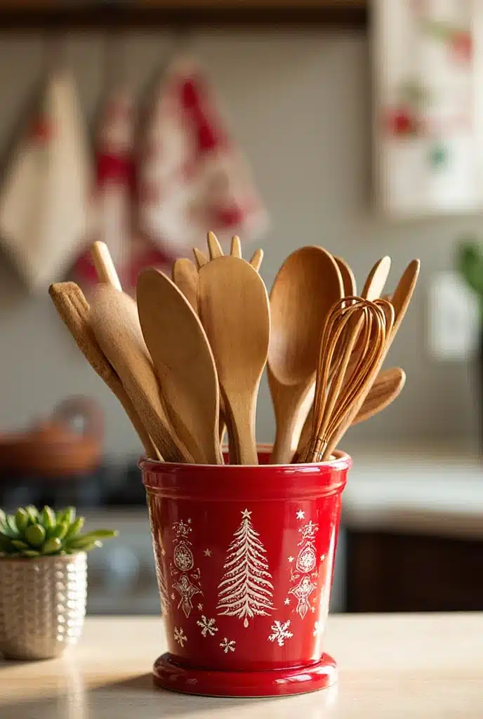 Switching out your regular utensil holder for something festive can instantly elevate your kitchen decor. Look for holders that are red, green, or adorned with holiday patterns. Many stores offer seasonal designs that can fit your style.