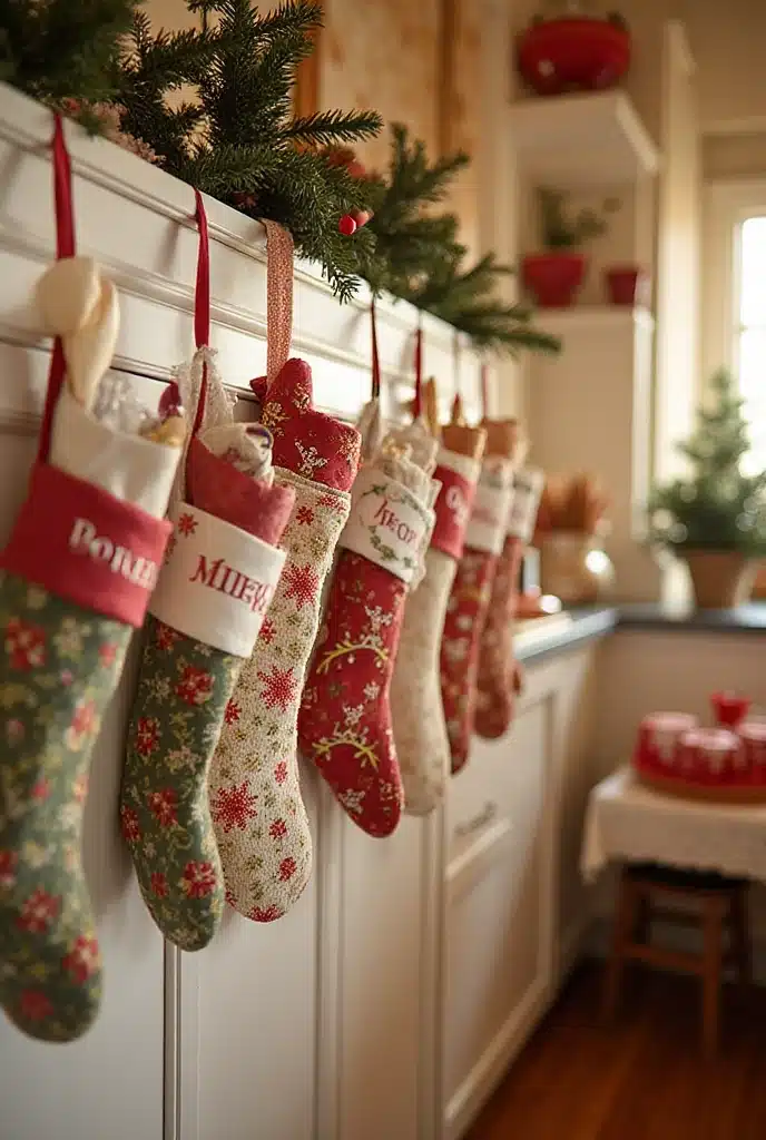 Hanging personalized stockings in your kitchen can add a charming touch to your decor. You can fill them with small treats or kitchen gadgets, making them both decorative and functional.