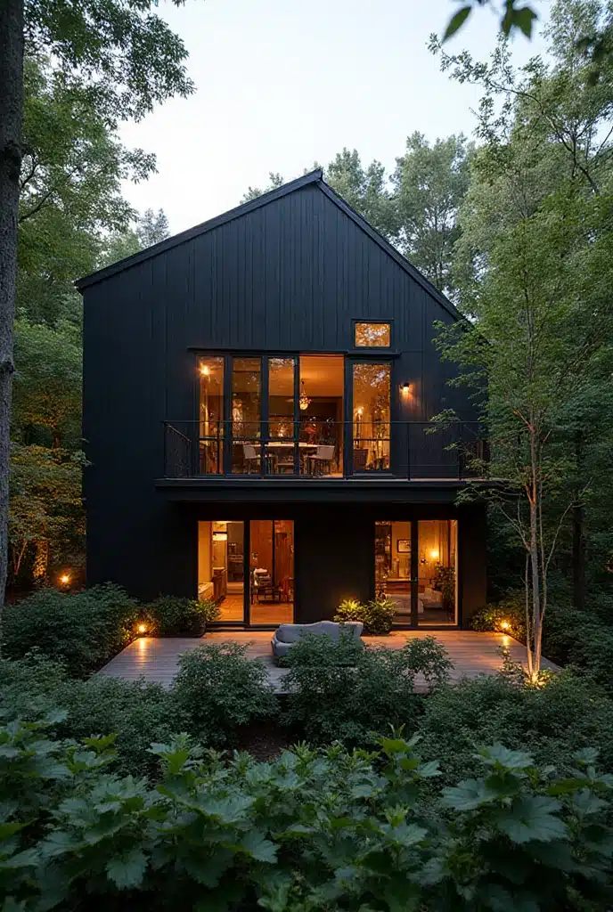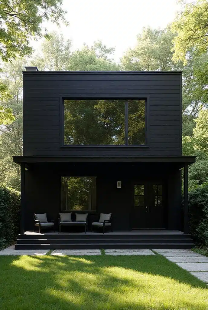 Imagine a black house surrounded by lush greenery. The trees and grass pop against that dark backdrop. It creates a moody yet inviting atmosphere. Plus, black is versatile. It works with various architectural styles, from contemporary to traditional.