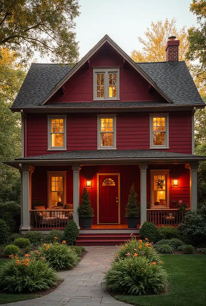 Think of a dark red house with white shutters. It’s classic and charming. This combination works great in suburban neighborhoods, offering a touch of personality without going over the top.