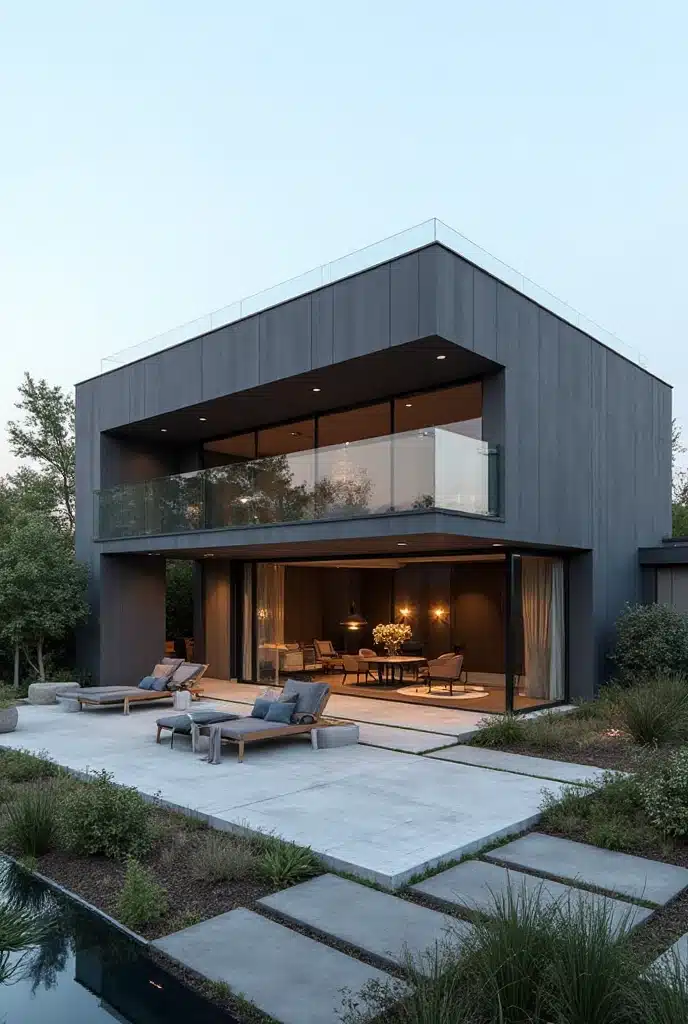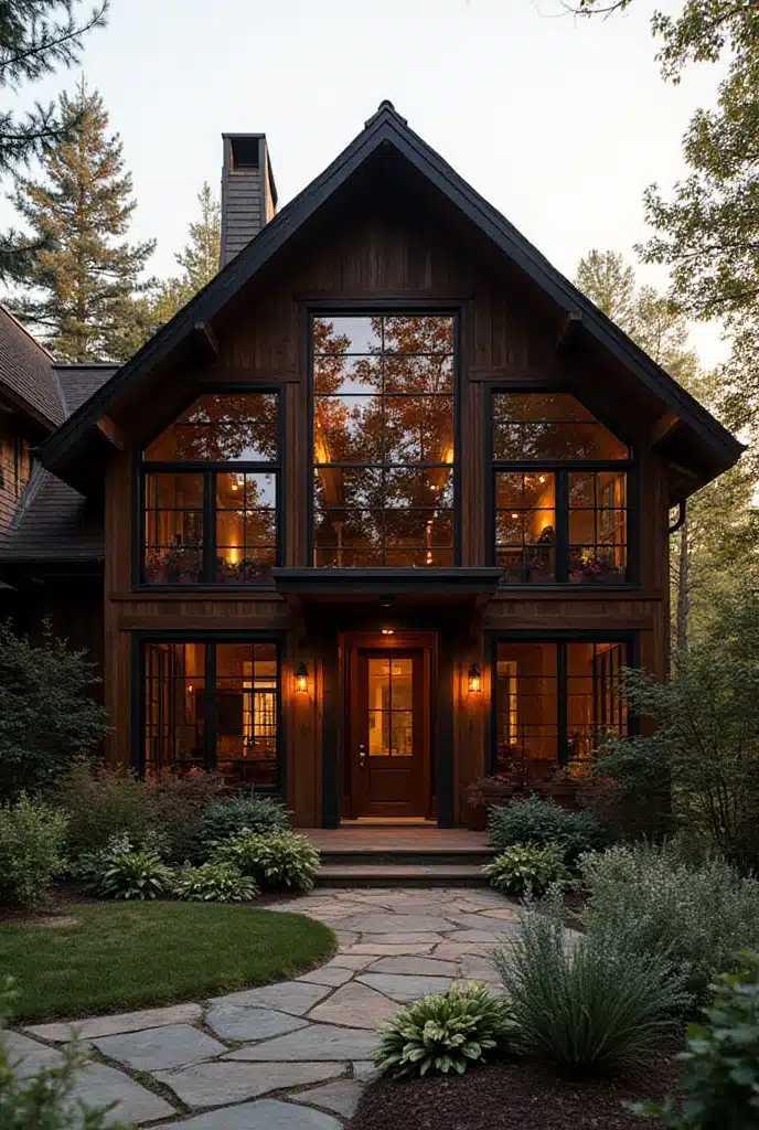 Think of a charcoal house with wooden beams and a porch. It’s modern yet timeless. This combination works well in both urban and rural settings, offering versatility in design.