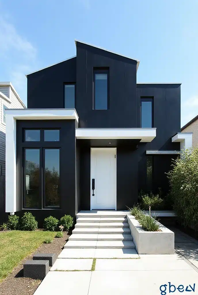 Picture a black house with white trim and large windows. It feels fresh and contemporary. This classic pairing is versatile, fitting seamlessly into various architectural styles.