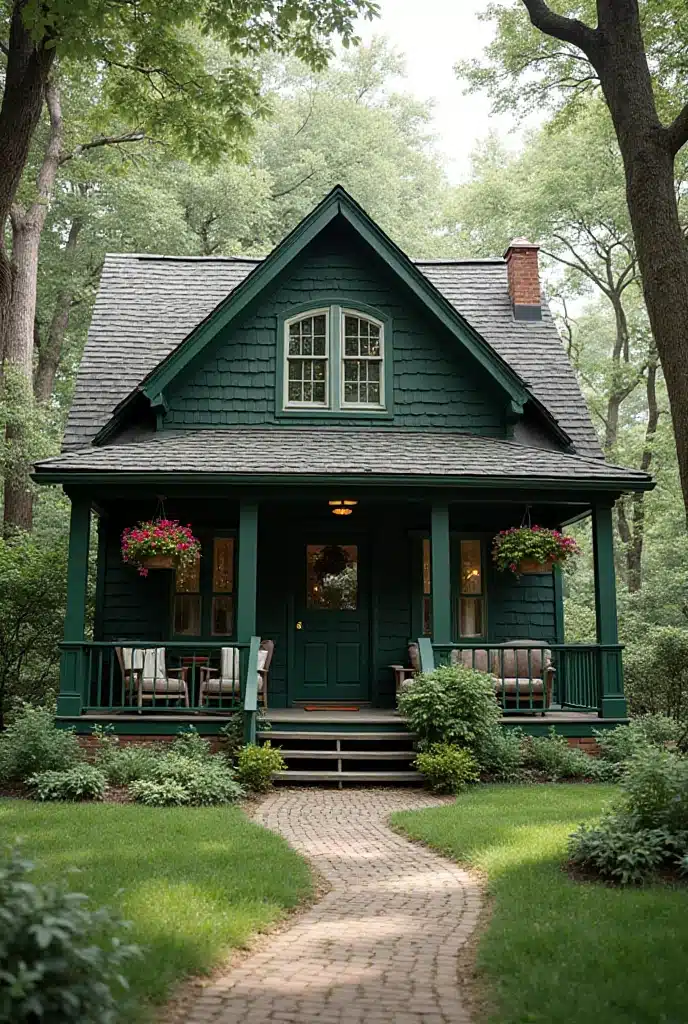 Now, let’s talk about deep forest green. This color is all about connection to nature. A forest green house can mimic the trees around it, blending in beautifully with the environment.
