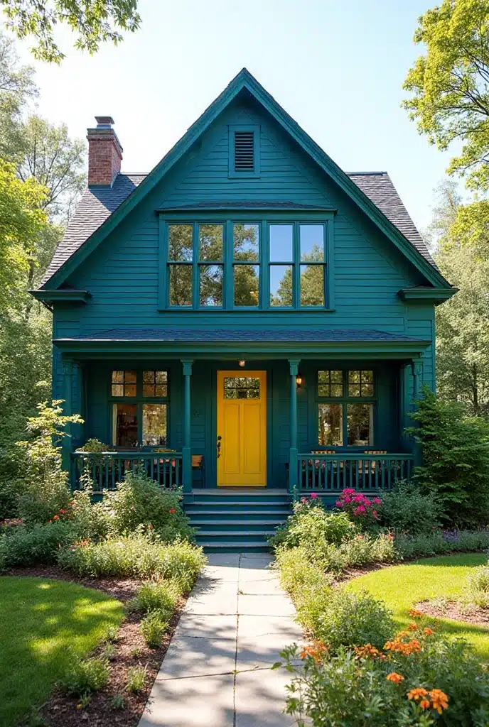 Imagine a teal house with a bright yellow door. It’s vibrant and fun! This color can make your home stand out in a delightful way. Pair it with natural woods for an earthy touch.