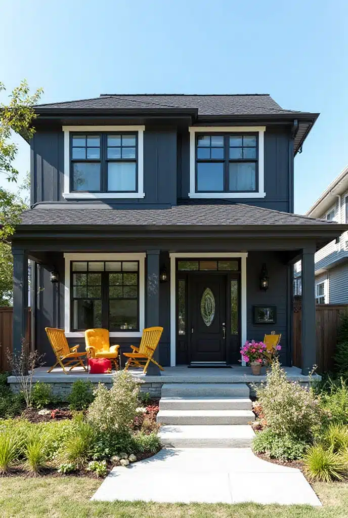 A dark gray exterior paired with bright trim creates a striking contrast. It’s a playful way to add personality to your home. This design can be both classic and contemporary.