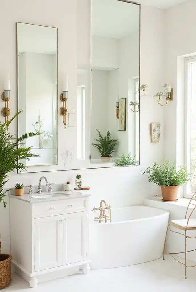 Consider using different mirror shapes for added interest. A round mirror can soften the lines of a rectangular vanity, while an oversized mirror can serve as a striking focal point. It’s a simple trick that makes a big impact!