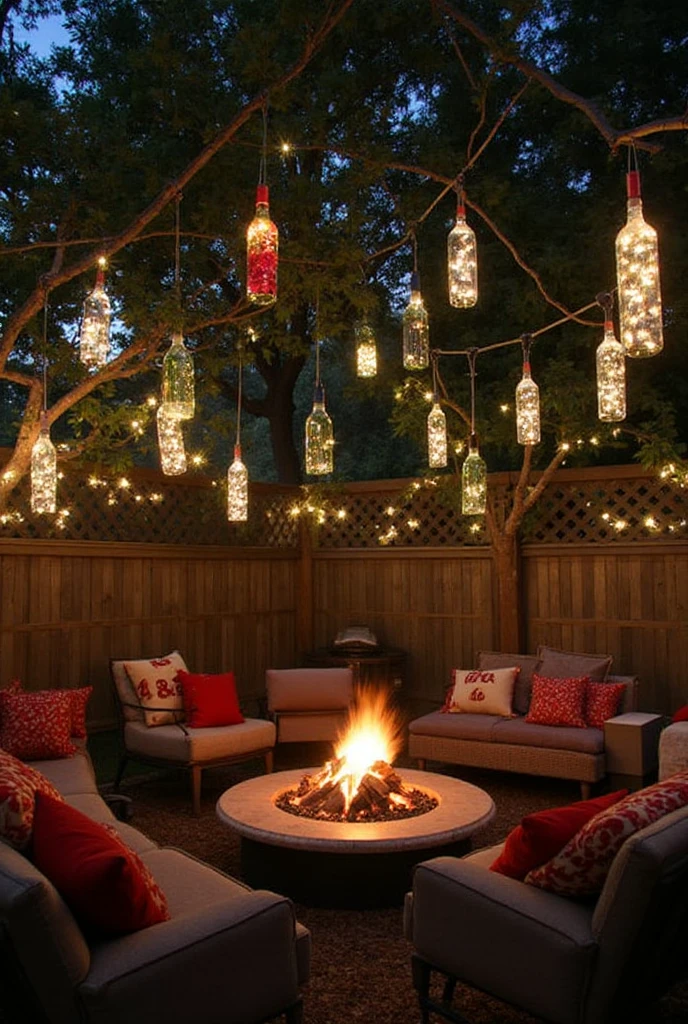 Got some old bottles lying around? Turn them into festive lights! Fill them with fairy lights and place them on your porch or patio.