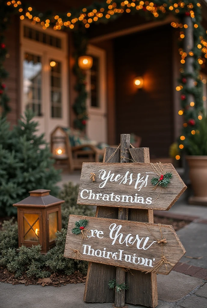 A wooden sign can add character to your outdoor decor. You can make one yourself using reclaimed wood. Paint a festive message like “Merry Christmas” or “Let it Snow.”
