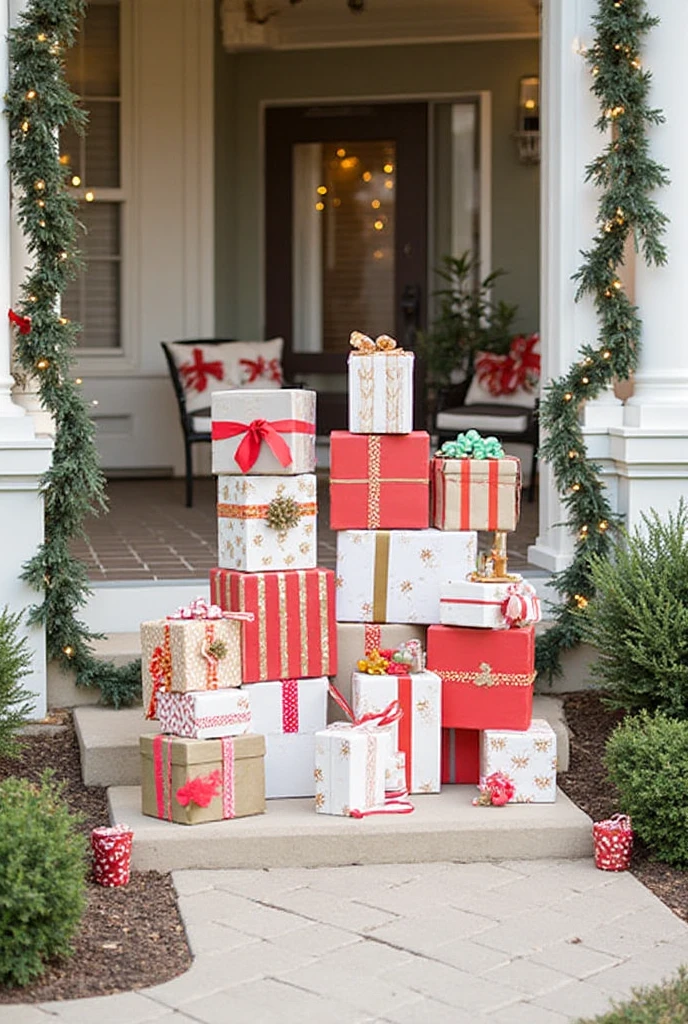 Create oversized gift boxes to place in your yard. Use cardboard boxes wrapped in colorful paper. Stack them up for a fun display.