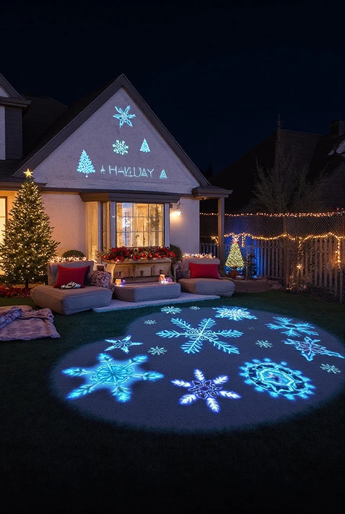 Finally, consider using LED projector lights to create stunning displays on your home. These lights project holiday-themed images like snowflakes or Santa onto your house.