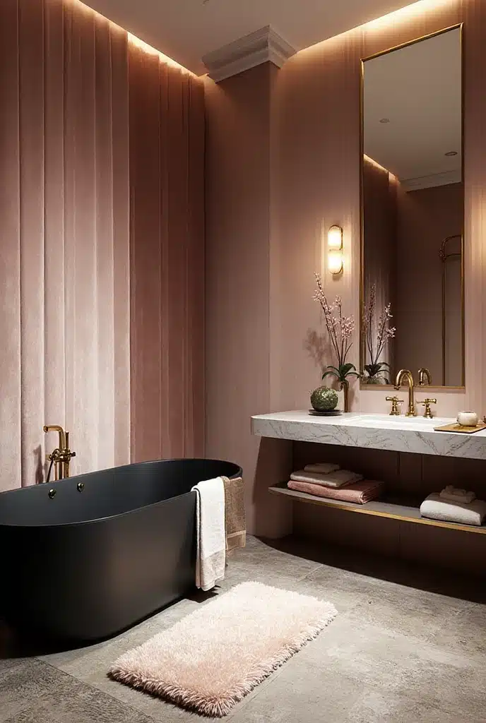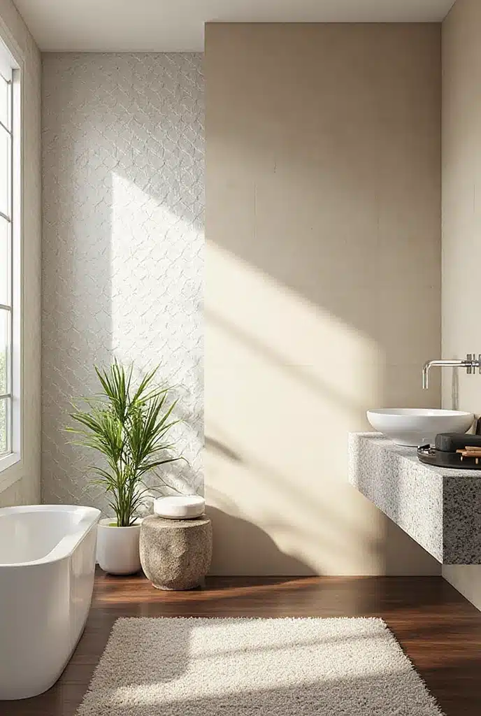 Textured walls can also help reflect light, making the space feel brighter. It’s a simple way to add a luxurious touch without overwhelming the design. Think about a feature wall behind the vanity for an eye-catching effect.