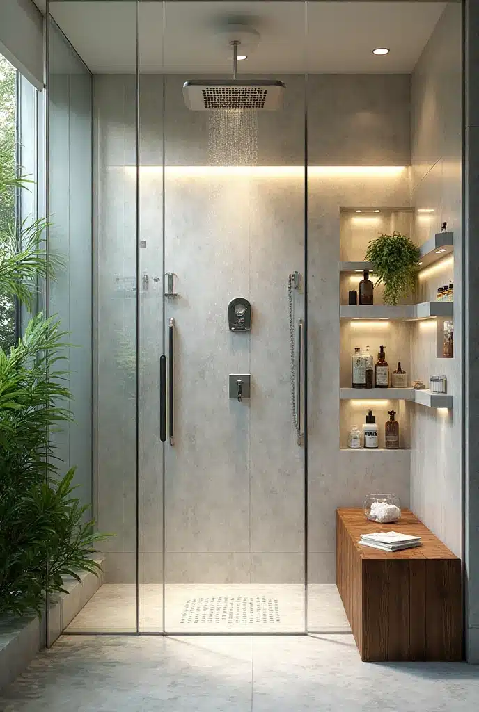 Think about incorporating natural stone tiles. They add a touch of elegance and can create a serene environment. A glass enclosure can open up the space while keeping it sleek and modern. Don’t forget to add a shelf for your favorite shower products—functionality is key!