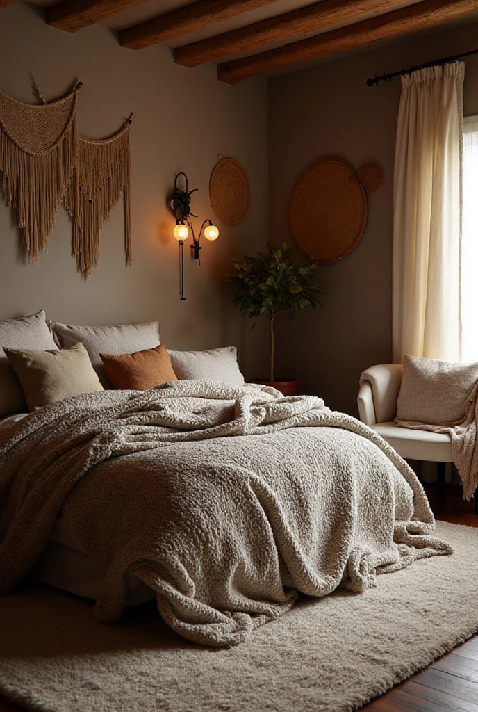 Texture is key when it comes to creating a cozy atmosphere. Layering different fabrics adds warmth and depth to your space. Think chunky knit blankets, soft throws, and plush rugs.