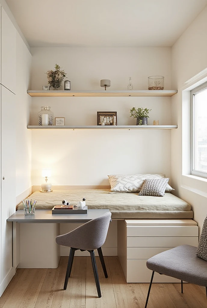 Decluttering is a key aspect here. Keep only what you truly need and love. Think about multifunctional pieces, like a storage bed or a sleek desk that doubles as a nightstand. This keeps your space open and airy, making it feel larger than it actually is.