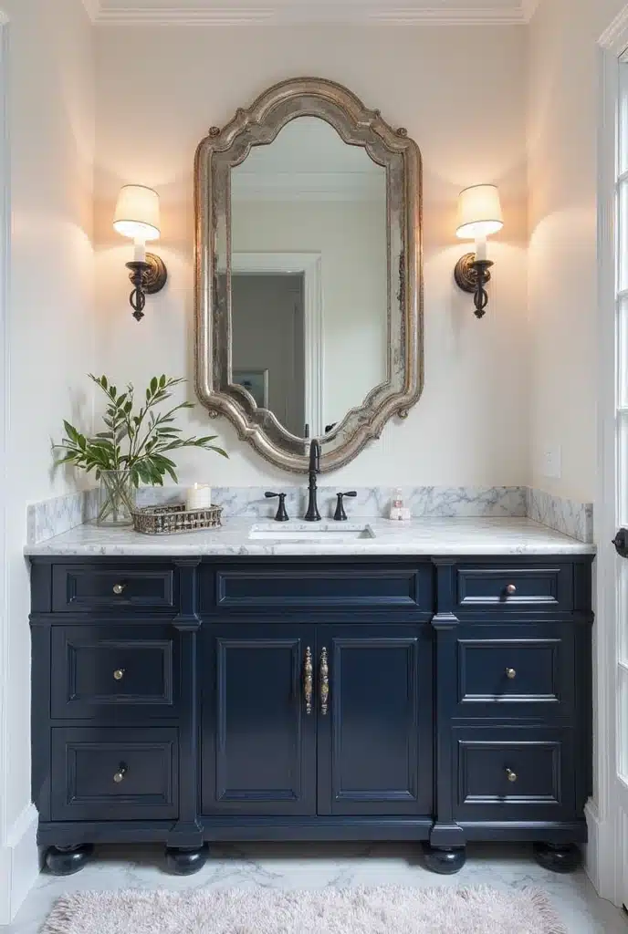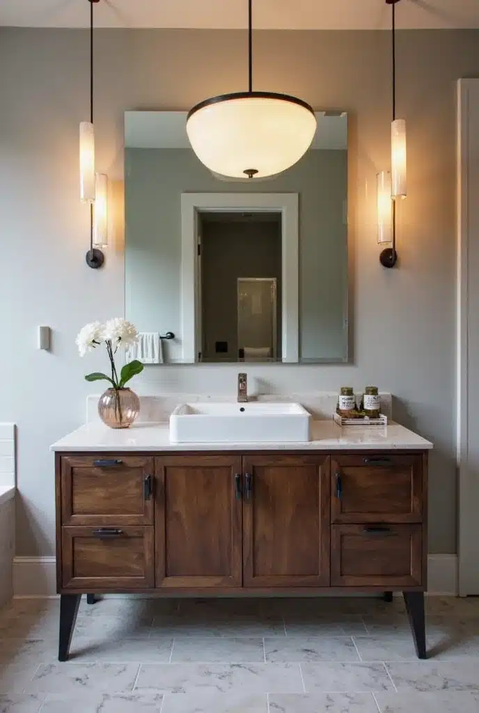 Don’t overlook the power of lighting! A bold light fixture can be the cherry on top of your vanity design. Think large pendant lights or sculptural sconces that draw the eye. Good lighting is essential for any bathroom, especially around the vanity area.