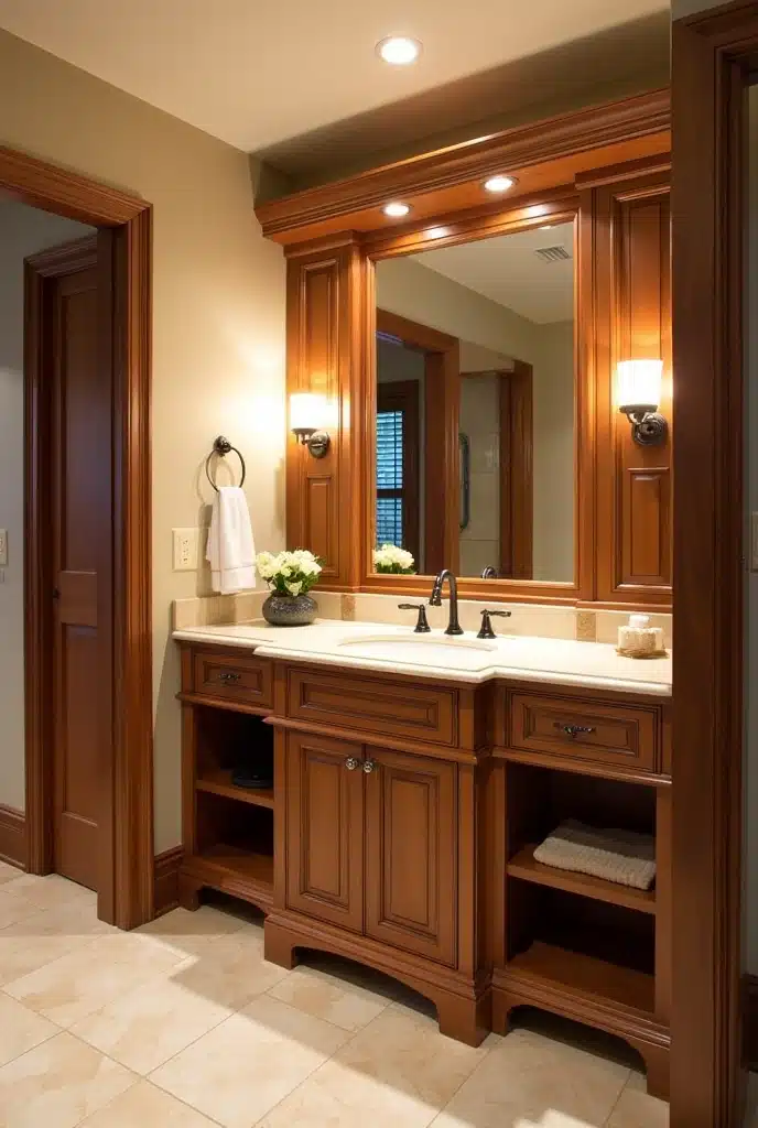 Work with a designer to create a layout that meets your exact needs. You could include pull-out drawers for hair tools or extra deep cabinets for larger items. With custom options, your vanity can be both beautiful and functional. It’s a great way to reflect your personal style.
