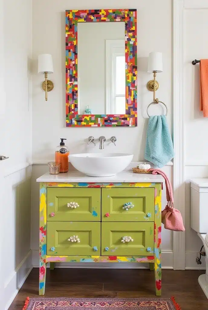 Consider custom artwork or painted designs on the cabinet. This not only adds a personal touch but also makes the vanity a focal point. It’s a fun way to express creativity in your bathroom.