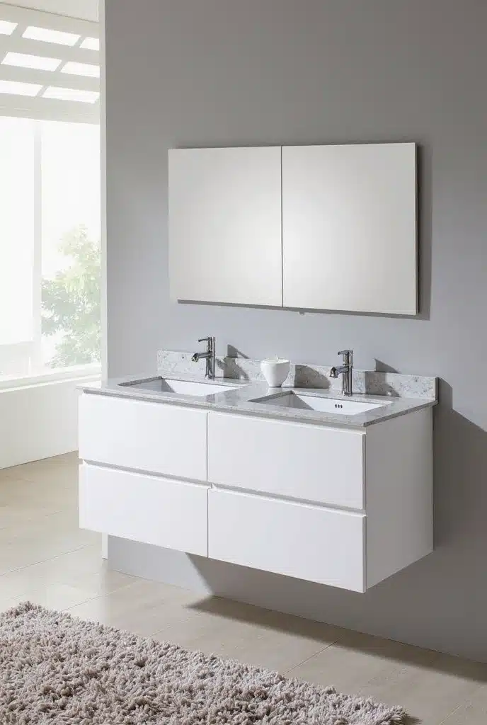 Consider using a mirrored finish on the cabinet doors or drawer fronts. This can create a stunning visual effect, especially in a smaller bathroom. Pair it with soft lighting for a truly luxurious feel. It’s a perfect way to make your bathroom feel more spacious.